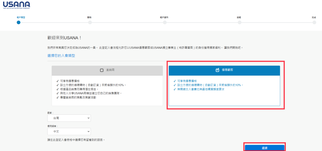 USANA線上入會成為優惠顧客流程(適用方法1或2)